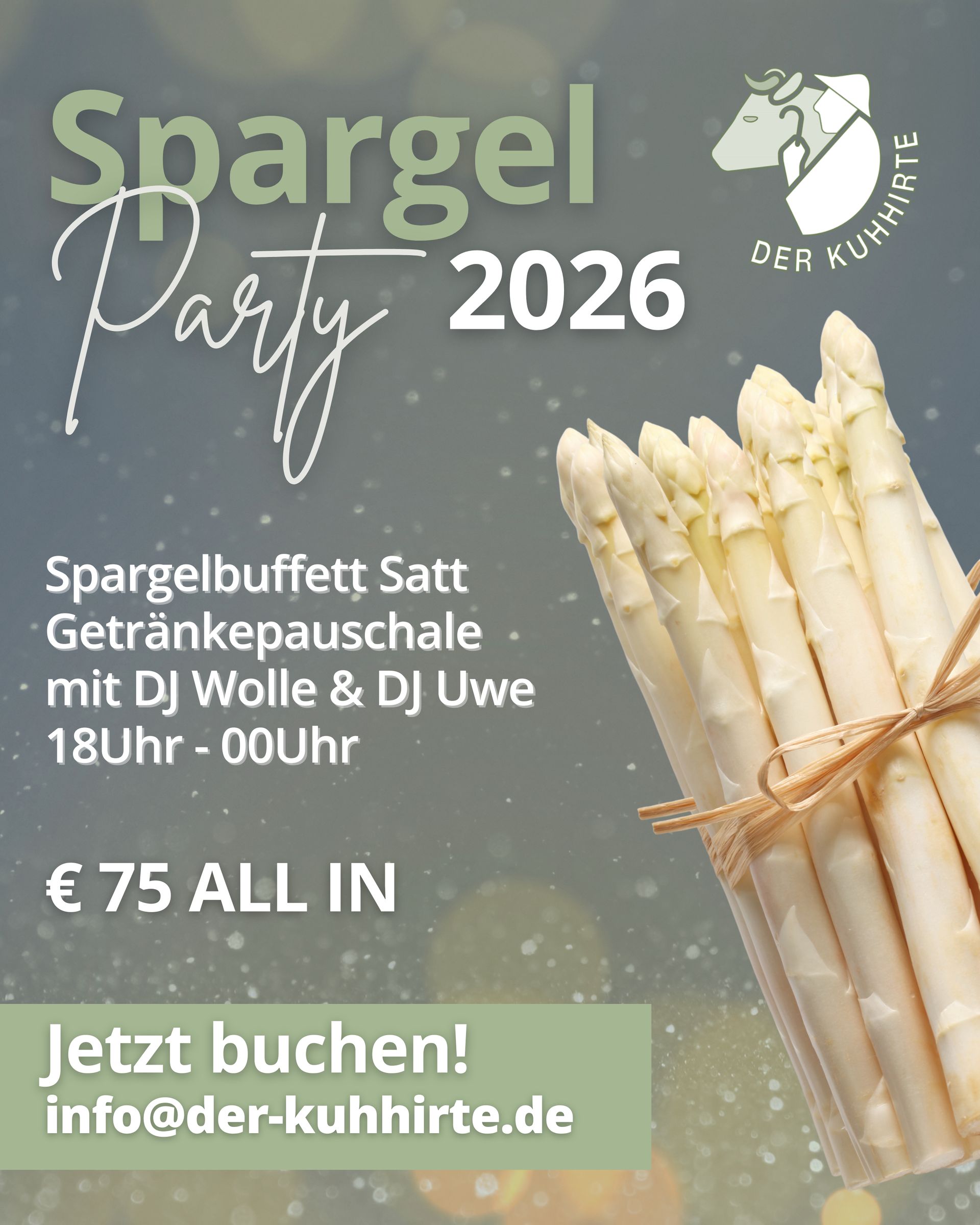 Frischer Spargel, Live-Beats und volle Genuss-Power: Im Mai 2026 lädt der Kuhhirte zur Spargelparty ein.